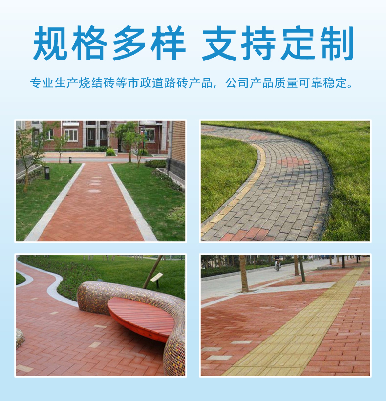 ①.廣場磚源自行業(yè)嚴格的選料標準和獨特的高溫慢燒技術,要求吸水率<5%。原料配方中的瘠性料比例占70%,可塑性原料30%左右。②.通體廣場磚仿天然花崗巖石或紫砂巖石,花紋肌理自然,質感古樸厚實,綜合物理性能優(yōu)良。